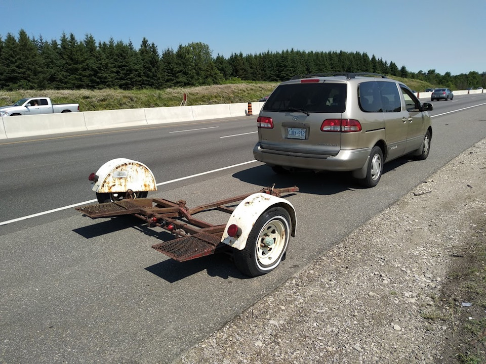 Так как вэн максимум может тянуть 3500 паундов (прицеп + машина), самым простым вариантов показалось иметь подкатный прицеп, по нашему - tow dolly. Цена на них начинается от 900 долларов с рук, и жаба не давала мне потратить такие деньги на ненужную, в общем, вещь - ведь гоночной машины у меня еще нет! И неизвестно, будет ли.